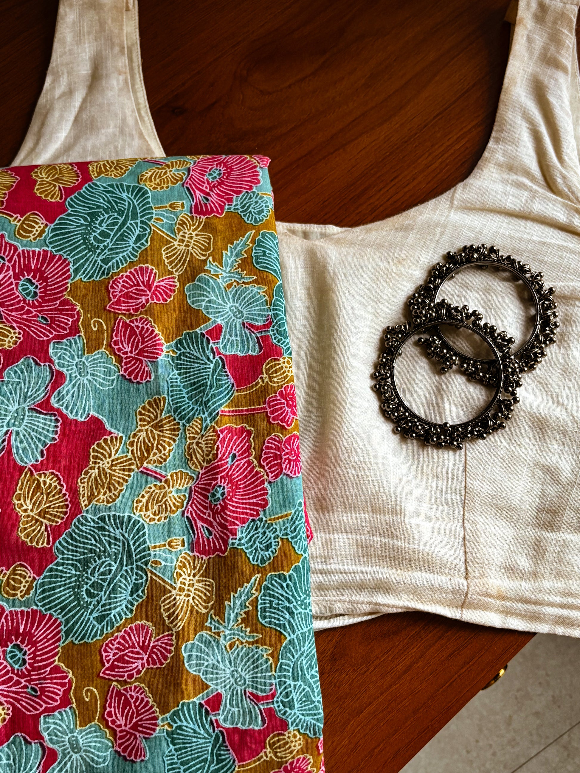 Length: 5.5 meters saree + 1 meter ivory cotton flex blouse piece