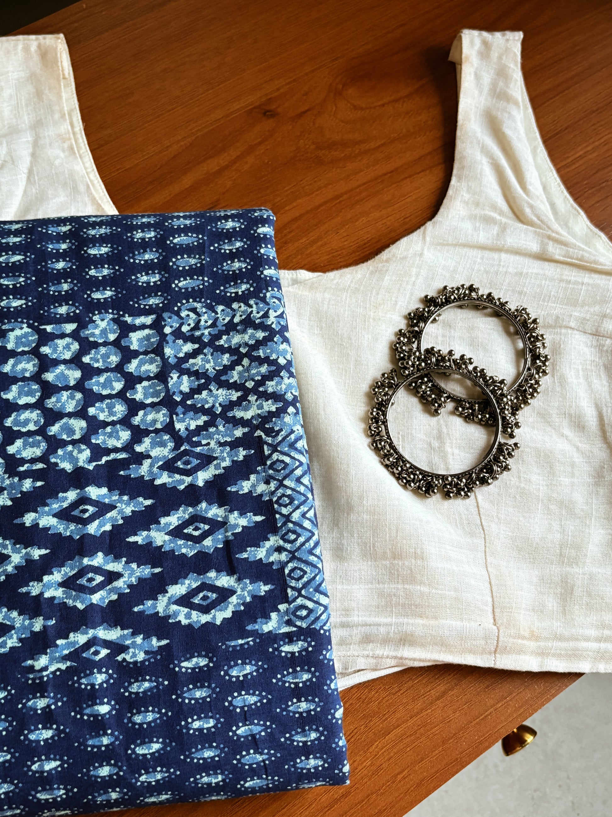 Length: 5.5 meters saree + 1 meter ivory cotton flex blouse piece