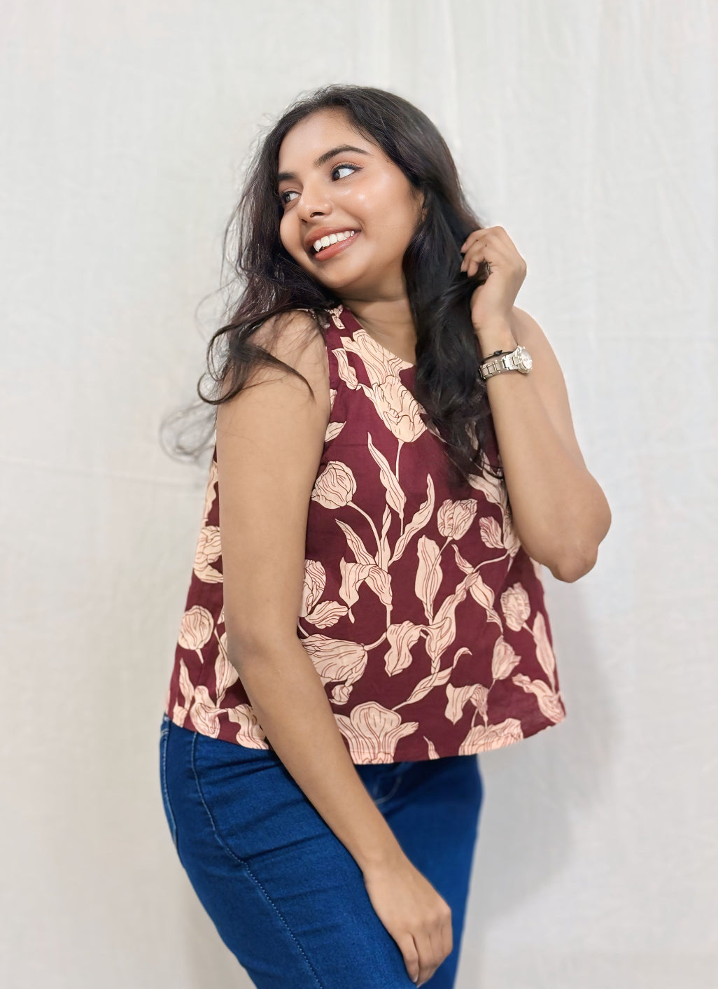 Maroon Floral Printed Cotton Top.